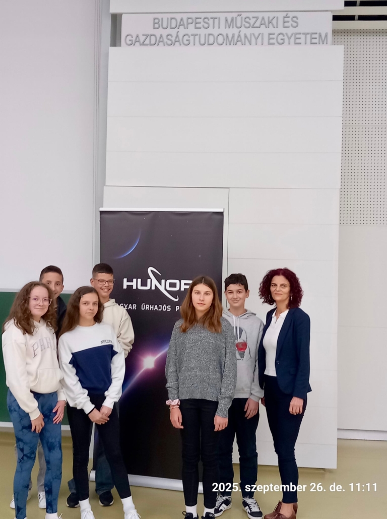 A projekt jóvoltából lelkes tanulóink szeptember 26-án a BME-n személyesen is találkozhattak Kapu Tibor magyar kutatóűrhajóssal, meghallgatták inspiráló előadását az űrállomáson szerzett tapasztalatairól, és megnézték az UNIverZOOM projekt izgalmas kísérleteit is, amelyeket hamarosan maguk is kipróbálnak az iskolában. Ez az élmény felejthetetlen motivációt adott tanulóinknak, és bízunk benne, hogy hozzájárul a természettudományok iránti érdeklődésük további erősödéséhez.