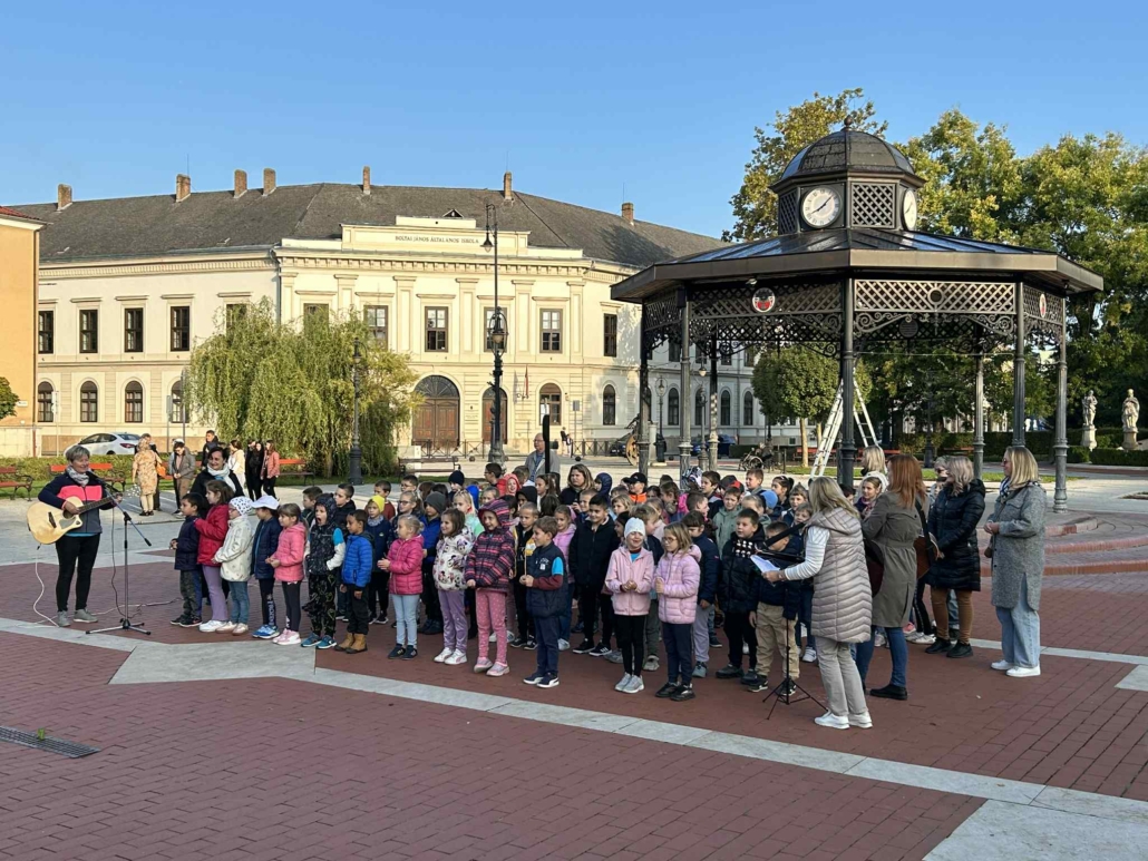 A Farkas Ferenc Zene- és Aranymetszés AMI szervezésében idén is „Zenél a város”, amihez iskolánk diákjai is csatlakoztak. Alsós osztályaink egy minikoncerttel lepték meg társaikat, szüleiket és a járókelőket az Erzsébet téren. Tanítóiknak köszönjük a felkészítést!